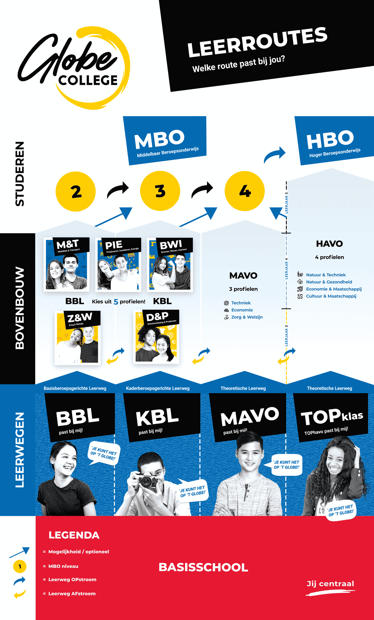 Hier zie je de leerwegen die het Globe College aanbiedt.